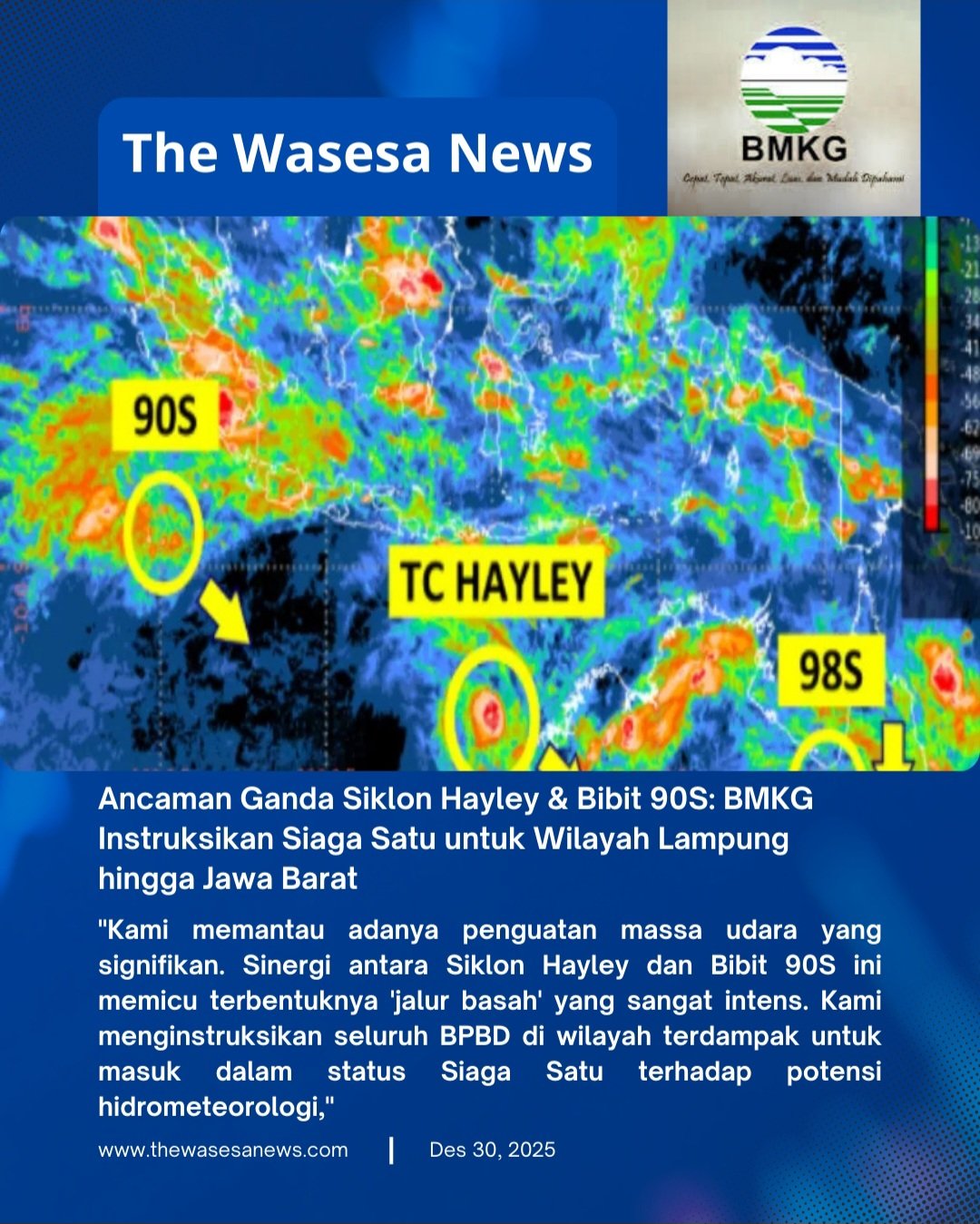 Kemunculan Siklon Tropis Hayley di Samudra Hindia dan pertumbuhan Bibit Siklon 90S diprediksi akan menjadi motor penggerak cuaca ekstrem di sepanjang koridor Lampung, Banten, DKI Jakarta, hingga Jawa Barat.