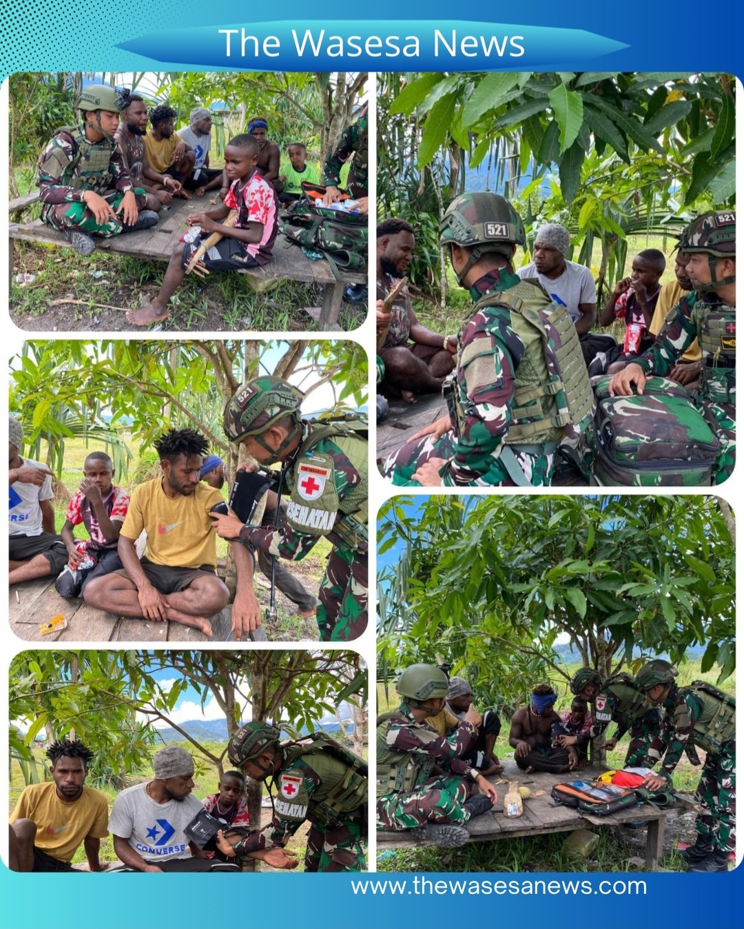 Wujud kepedulian terhadap kesehatan masyarakat di wilayah penugasan, Satgas Yonif 521/DY melaksanakan kegiatan Pembinaan Teritorial (Binter) melalui pelayanan kesehatan gratis kepada warga Kampung Walkep, Distrik Elelim, Kabupaten Yalimo, Provinsi Papua Pegunungan. (10/2/2026).