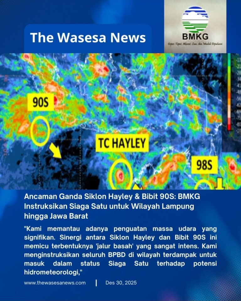 JAKARTA, Badan Meteorologi, Klimatologi, dan Geofisika (BMKG) mengeluarkan peringatan serius menyusul terdeteksinya dua fenomena atmosfer sekaligus di sekitar wilayah kedaulatan Indonesia. Kemunculan Siklon Tropis Hayley di Samudra Hindia dan pertumbuhan Bibit Siklon 90S diprediksi akan menjadi motor penggerak cuaca ekstrem…