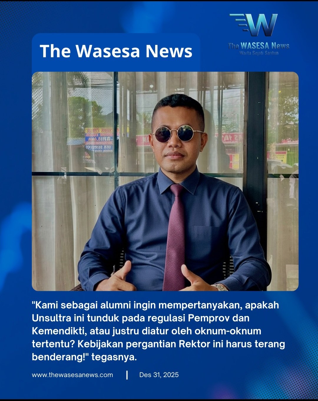 “Kami sebagai alumni ingin mempertanyakan, apakah Unsultra ini tunduk pada regulasi Pemprov dan Kemendikti, atau justru diatur oleh oknum-oknum tertentu? Kebijakan pergantian Rektor ini harus terang benderang!” tegasnya.